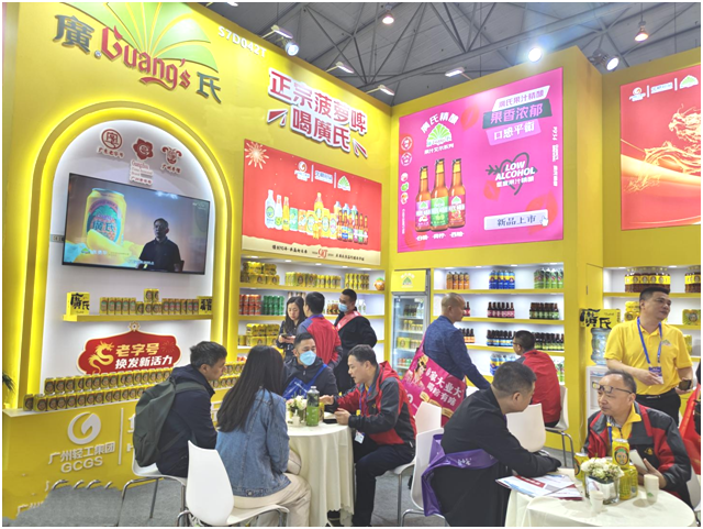 这次展会上,廣氏食品吸引了众多领导嘉宾及消费者的目光。廣氏经典小黄罐——菠萝啤,诞生于上世纪70年代,是廣氏品牌的拳头产品,是国内果味啤酒的始创品牌。菠萝啤蕴含丰富的岭南文化元素,对华南地区产生了深远的影响。廣氏还在经典产品的基础上不断创新,推出了果汁饮料、0卡低卡功能饮料、低酒精饮品以及廣氏/五羊精酿啤酒等系列产品。