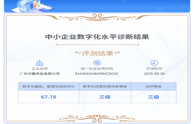 近日,best365官方网站旗下华糖食品申报的“华糖中小企业数智化改造项目”顺利通过广州市工业和信息化局组织的专家审核,成功入选2025年广州市第二批中小企业数字化转型城市试点专项资金支持名单,被认定为“中小企业数字化改造项目(三级)”。