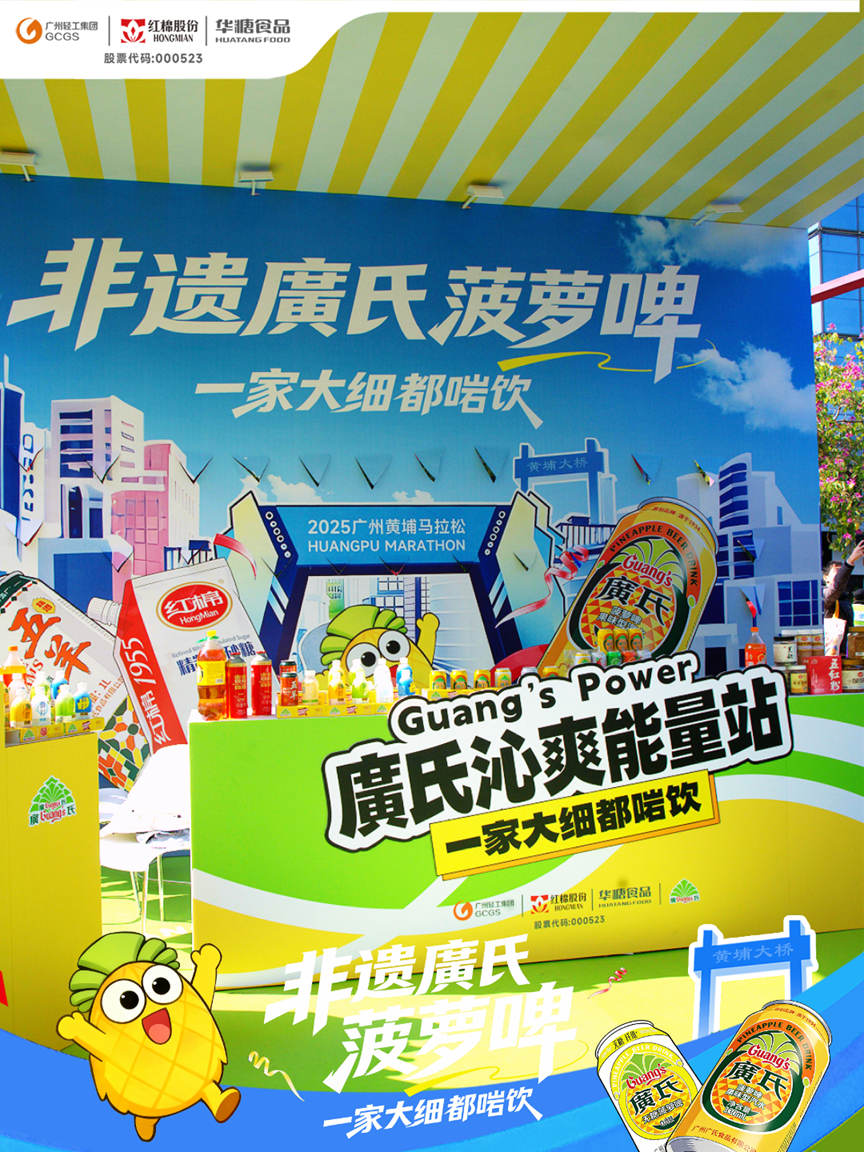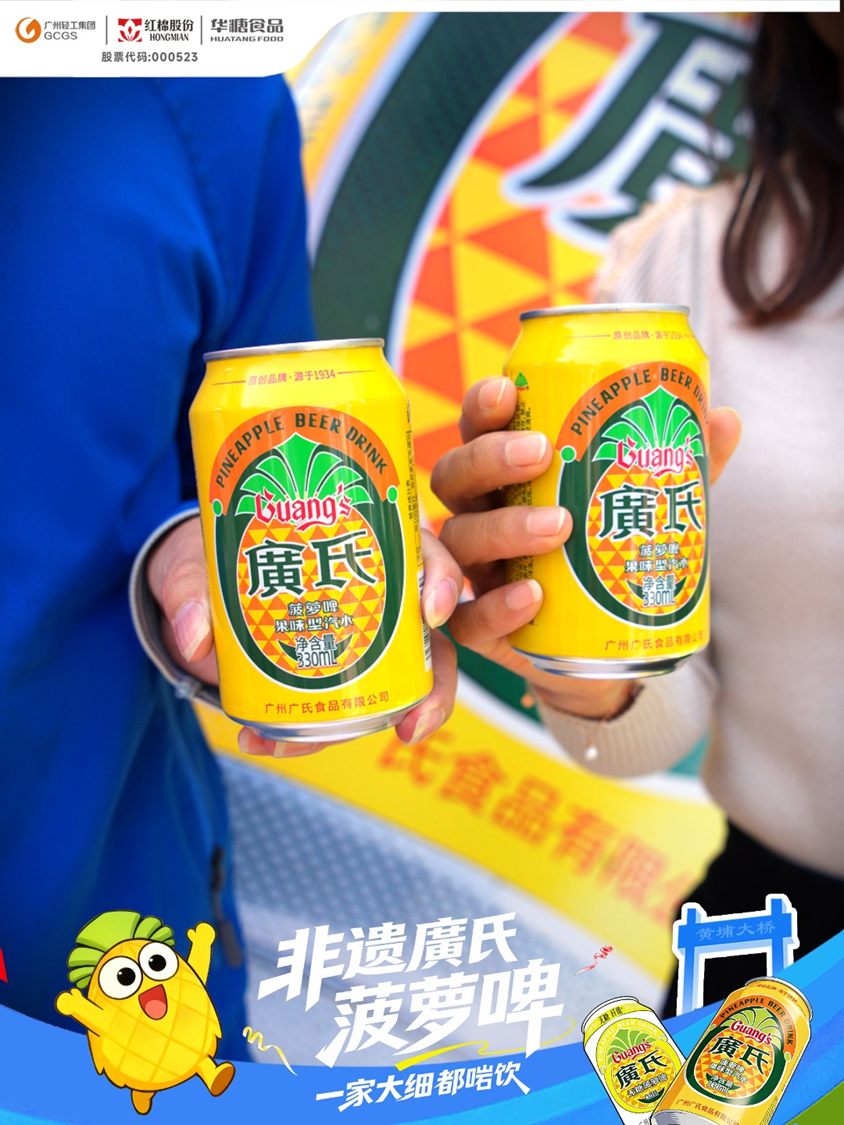 当蓝紫色的人潮在绿轴广场奔涌蓄势,一抹亮眼的跃动黄映入眼帘,正是广州轻工集团旗下best365官方网站子公司华糖食品的廣氏菠萝啤。